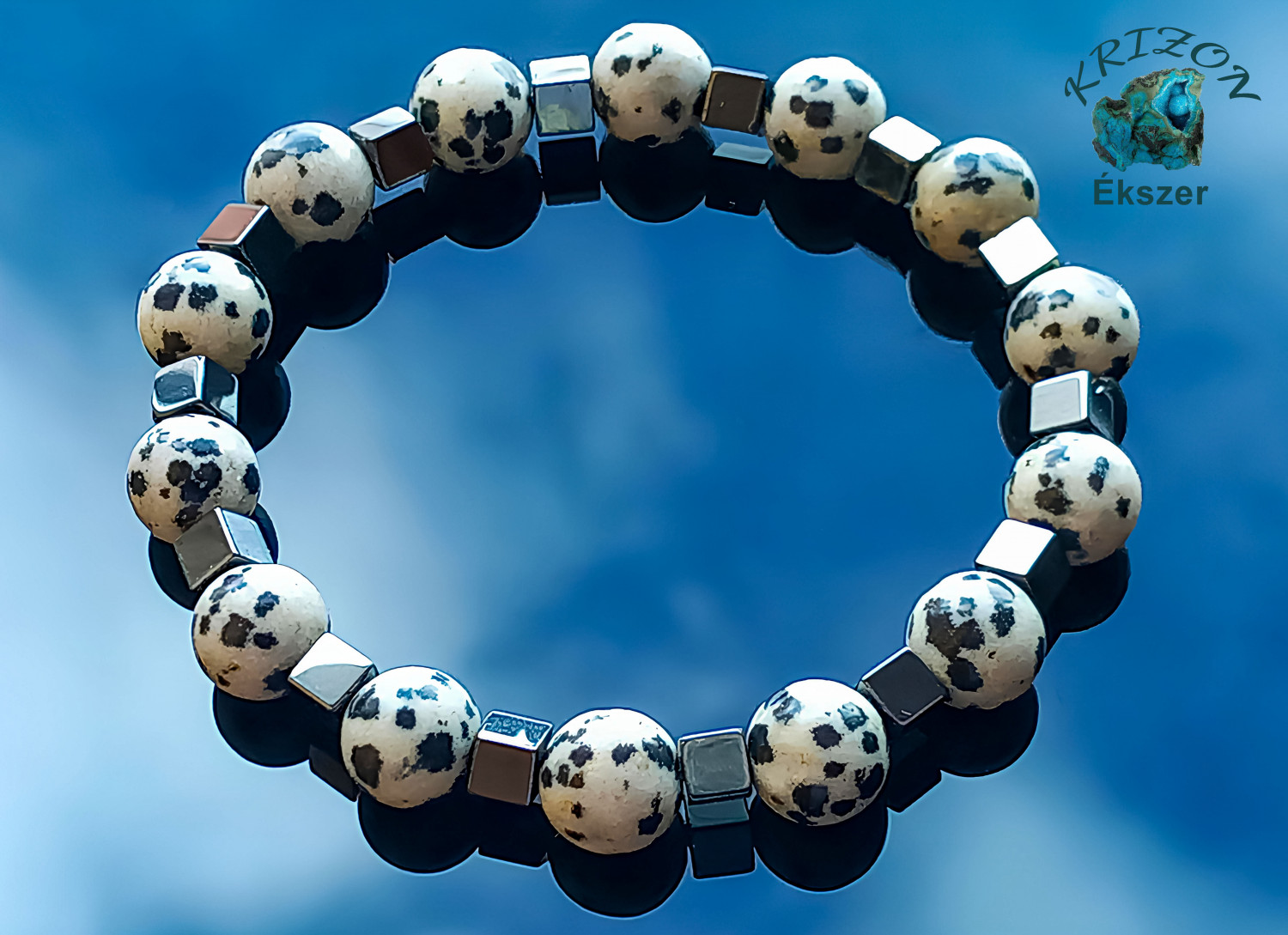 Hämatit 4mm - Dalmatiner Jaspis 8mm Armband